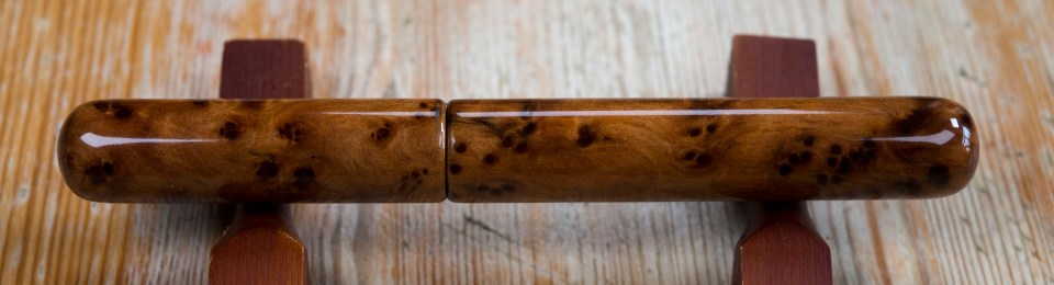 I was looking at my pens last week and saw one I had not used for a while, a John Twiss creation made from Thuya Burl wood. It looks good and a lot of attention was made to bringing out its character and beauty. It has been an enjoyable week using the pen and I had created an nice review piece for it, though in true blogging fashion, felt the article was missing something. Photos were taken and about to be processed to find I already had photos …. from the previous time I had covered it … ‘doh !’ I believe is a suitable term. Still it’s a great excuse to show off the new photos of this beautiful pen.