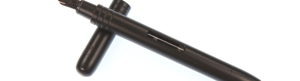 The cap requires a little effort to remove, but in a good way as it feels secure and leaves you with no fear it might accidentally pop off in a pocket or if you were to pull the Calamus out of a tight pouch. It is short with two engraved rings just above the the cap opening, a roll stop, and opposite that a lightly embedded company logo. Alas the latter is so subtle it is easy to miss, which is a shame considering this pen was designed as an anniversary celebration of Aratrum GmbH. The stop works, though bare in mind this is not the lightest of pens so push it or put the pen on a slope and it will continue to roll. While it looks like a small ball bearing has been embedded into the cap wall I do like the way the steel colour contrasts against the matt black of the rest of the pen. Look in the cap and a plastic inner is clearly visible starting just inside. Whilst I’ve only had this pen for a few weeks it does appear to seal very well as I’ve seen no apparent ink evaporation.
