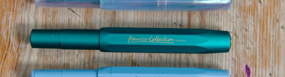 Back when I reviewed my Orangina Sport I commented on Kaweco’s reputation for inconsistent nibs. This was three and a half years back and there were rumours Kaweco were switching from Bock to JoWo nibs. Well they did not, so how do things fair now. Three medium nibs and … three different writing experiences. Thing is it can only be partly down to the ink. Sure my pen contains Pilot Iroshizuku Ina-Ho, but the two loaners both contain Diamine Peppermint from the 2020 Inkvent calendar, which is a shimmer ink. Now I did have to rinse out the nibs and feeds on the latter two pens due to particulate blockages, however it is my Iridescent Pearl that is actually the worse writer. At the same time it is both the wettest and the least smooth, actually having a slightly rough feel to it. Under a loupe all is fine and it has been this way since first inked (I always properly rinse manufacturing detritus out of my pens). The Mellow Blue pen is smooth though with a pencil/graphite like feedback. I know people who love nibs this way and I think this is what the Bock 060 nibs should actually be like. Finally the Iguana Blue AL Sport has by far the smoothest nib, though with the same level of ink flow as the other loan pen.