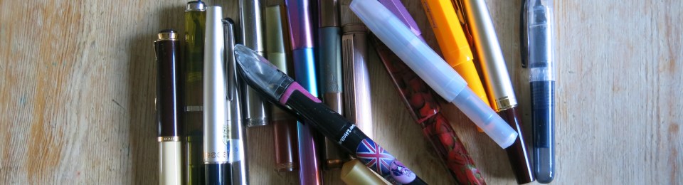And below are those presently actively in use either at my desk or in my pen case (though one is partly there for review). Note there are others inked for lending to others or as they are occasionally used so have not been cleaned out.